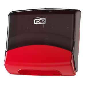 1. 6540281 TORK FOLDED WIPER/CLOTH DISPENSER, RED/BLK